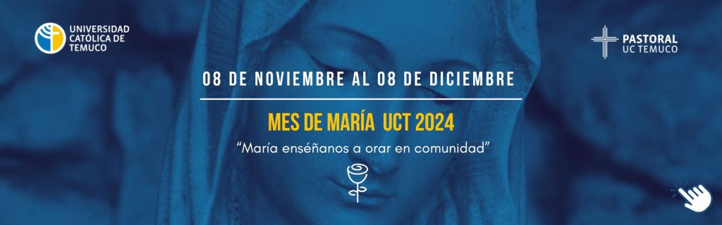 Además, la Universidad Católica de Temuco con los Consejos Pastorales de nuestra casa de estudios, te invitan a vivir este mes en Campus San Francisco en la Capilla San Francisco de Asís y en Campus San Juan Pablo II en el Templo Jesús Maestro.